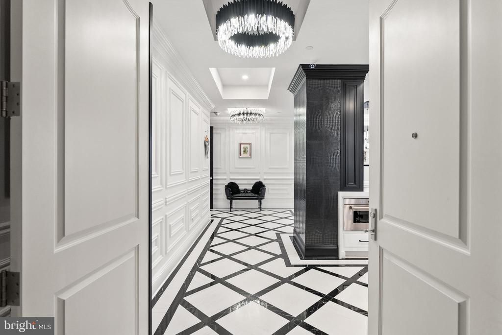 Experience luxury living at its finest in this extraordinary residence that combines two units into one expansive, stunning home in Annapolis Towne Centre offering over 3,400 square feet of impeccably finished living space. Completely gutted to the studs and reimagined, this one-of-a-kind home places you right in the center of it all—and only minutes from Downtown Annapolis—yet feels like a private retreat from the world. Designed for both grand entertaining and everyday comfort, the custom gourmet kitchen anchors the home and flows seamlessly into inviting living spaces. Sound-proof, glass-tempered doors allow rooms to transition effortlessly from open and connected to intimate and private. Thoughtful details include hidden, built-in Sonos speakers, exquisite moldings, tray ceilings, modern lighting, and a stunning blend of wood and marble flooring throughout. Wine enthusiasts will appreciate the climate-controlled wine room, while the primary suite is a true sanctuary, featuring a glamorous dressing room, multiple custom closets with secret storage, and a spa-like ensuite bath with hand-cut mosaic tile flooring and an oversized walk-in shower with glass door linen closet. Featuring a fully integrated Lutron smart home system, this residence offers effortless control of lighting, motorized shades, audio, temperature, and security access. Additional highlights include three additional bedrooms, two additional full baths, four garage parking spaces and two storage units. Residents enjoy world-class amenities including concierge service, fitness center, yoga studio, library, meeting rooms, elegant lounge spaces, and a spectacular rooftop pool—delivering a lifestyle that is as effortless as it is refined. Towne Centre has become the new heart of Annapolis — a vibrant destination where you’ll find everything you need, from grocery shopping and a premier fitness center to exceptional dining and upscale retail.